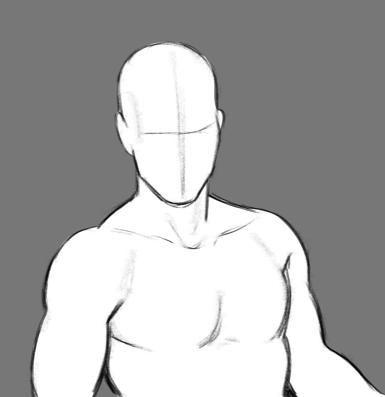 Head to chest / ribs. May include one or both arms and hands depending on the pose.